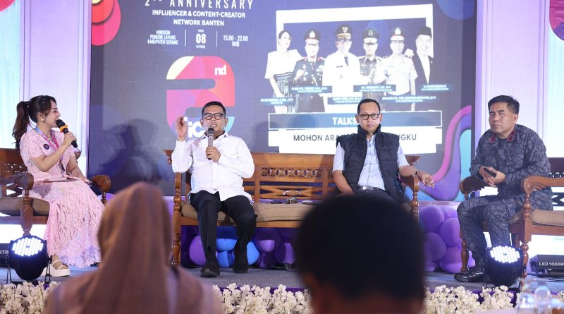 Hal itu disampaikan Andra saat talkshow di puncak peringatan Hari Ulang Tahun (HUT) ke-2 Influencer and Content Creator Network (ICN) Banten bertema ‘Mohon Arahan Abangku’ di Horison Resort Pondok Layung, Anyer, Kabupaten Serang, Rabu (8/10/2025). Talkshow menghadirkan Kajati Banten Siswanto, Kepala BNN Provinsi Banten Rohmad Nursahid. Gubernur hadir bersama Ketua TP PKK Provinsi Banten, Tinawati Andra Soni.