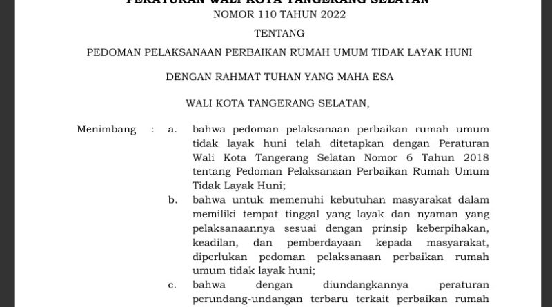 Perwal 110/2022: Panduan Lengkap Syarat dan Prioritas Penerima Bantuan Rumah Layak Huni Tangsel