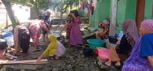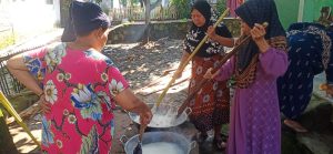 Ibu-ibu warga Kampung Serdang Masjid terlihat kompak dan penuh semangat dalam menyiapkan bahan dan memasak Bubur Asyura. Proses pembuatan bubur dilakukan secara gotong royong di halaman rumah Ibu Hj. Aswati, yang setiap tahun menjadi tempat kegiatan berlangsung.